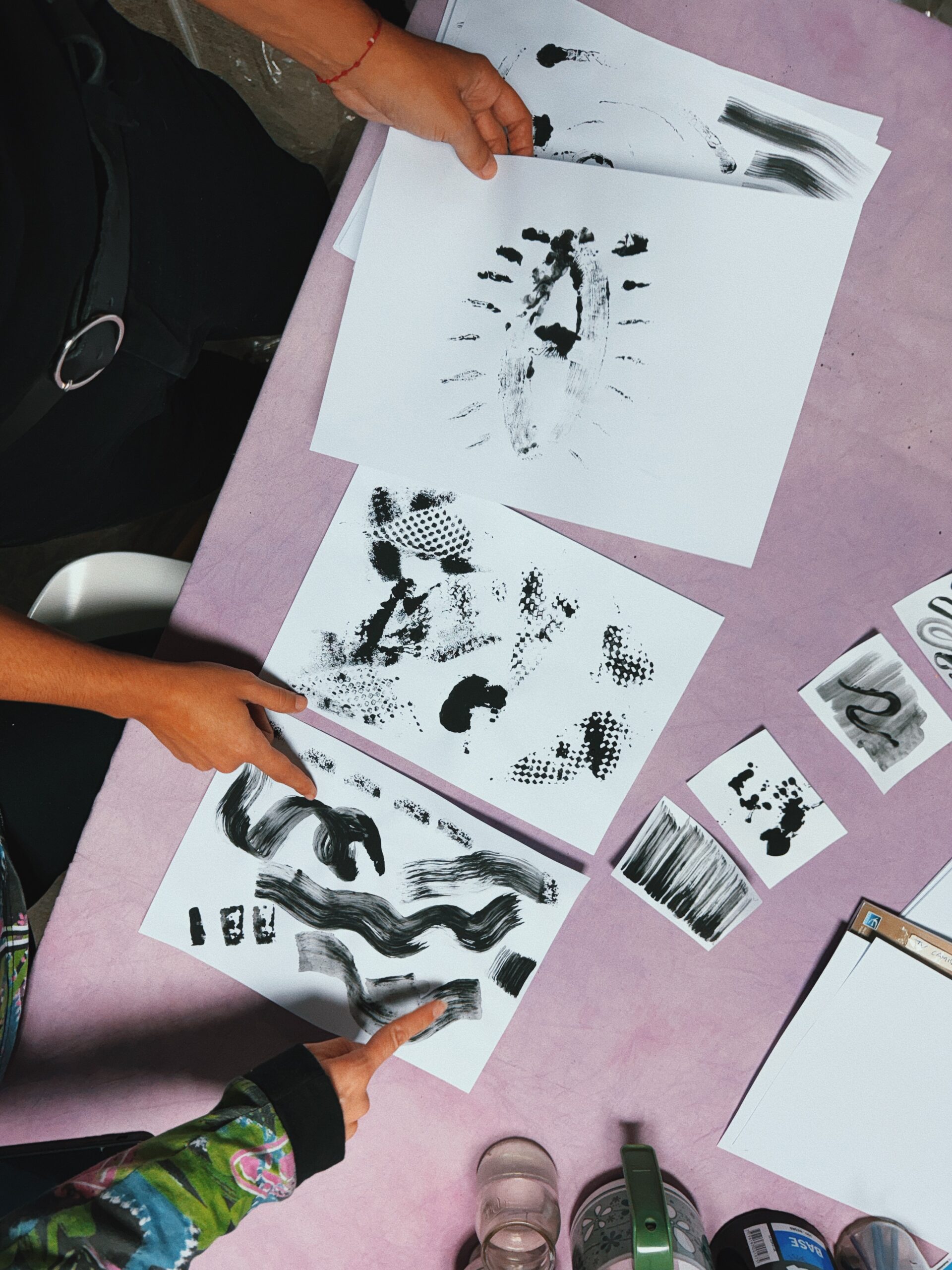 • Experimentación y creación de manchas abstractas a través de ejercicios disparadores y materiales artísticos.