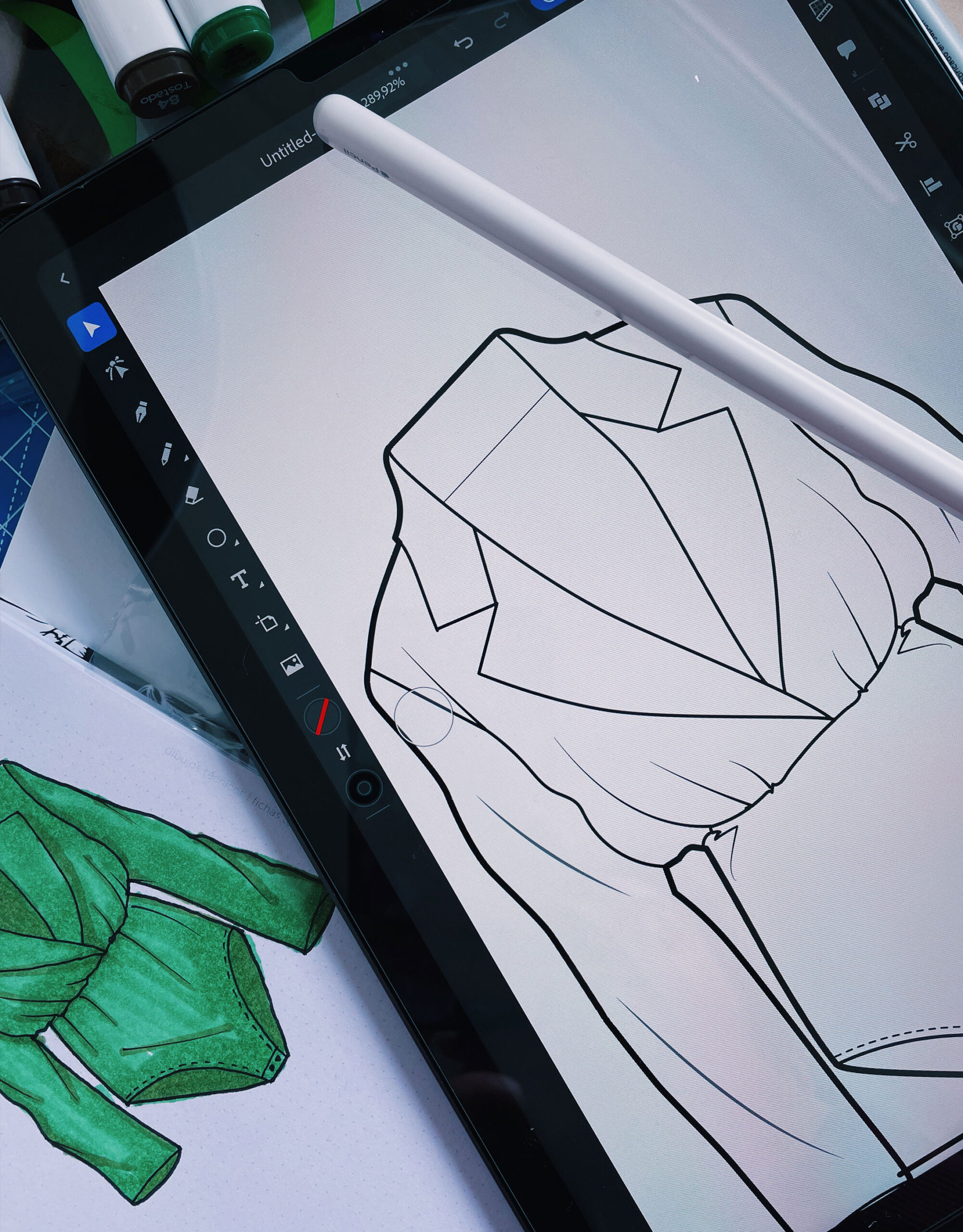 en esta masterclass vas a aprender a usar Adobe Illustrator en iPad desde cero para representar y digitalizar dibujos técnicos / geometrales de moda.